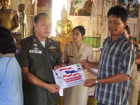 | เมื่อวันที่ 10 ก.ค.2553 พ.ต.ท.ประกฤติ ยามานนท์ ผบ.ร้อย(สบ2)ฯ (ร้อย ตชด.314),ร.ต.ท.ประหยัด นามสุข ,ร.ต.ท.ปราโมช พาราศิลป์ พร้อม ด้วยข้าราชการตำรวจร้อย ตชด.314 รวม 12 นาย ร่วมกับ อบต.สองห้อง อ.ฟากท่าฯ ได้ประกอบพิธีมอบป้ายชุมชนเข้มแข็งให้กับประชาชนบ้านชำบอน ต.สองห้องฯ ที่ครอบครัวผ่านการคัดกรอง ของคณะกรรมการหมู่บ้าน ตามโครงการเสริมสร้างหมู่บ้าน/ชุมชนเข้มแข็งเอาชนะยาเสพติดอย่างยั่งยืน และ โครงการอาสาสมัครตำรวจตระเวนชายแดน (อส.ตชด.) ของ ต.สองห้อง ณ ศาลาวัดบ้านชำบอนโดยมี นายธิติ แก้วมี นายก อบต.สองห้อง เป็น ผู้รับแผ่นป้ายฯต่อหน้าพระบรมฉายาลักษณ์ พระบาทสมเด็จพระเจ้าอยู่หัวฯ และมอบให้กับประชาชนจำนวน 108 คน |
