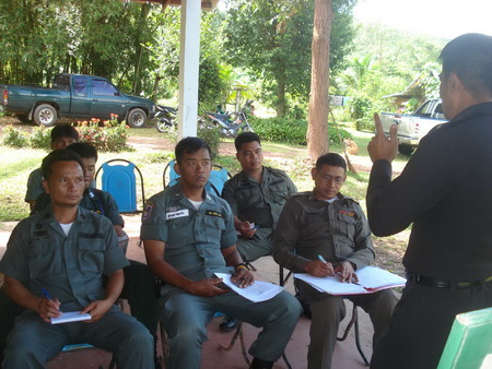 ร.ต.ท.ปราโมช พาราศิลป์ ผบ.มว.มชส.ร้อย ตชด.314 ได้สัมมนาชี้แจงภารกิจที่ได้รับมอบหมายกับข้าราชการตำรวจชุดปฏิบัติการ ก่อนเข้าดำเนินงานในพื้นที่หมู่บ้านเป้าหมายตามโครงการเสริมสร้างหมู่บ้าน/ชุมชนเข้มแข็งเอาชนะยาเสพติดอย่างยั่งยืน ในพื้นที่ 4 ตำบล กับ 1 เทศบาล ของอำเภอฟากท่า และตำบลบ่อเบี้ย อำเภอบ้านโคก จังหวัดอุตรดิตถ์ |