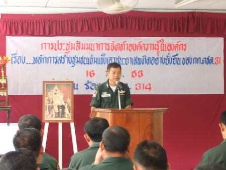 | เมื่อวันที่ 16 ก.ค. 53 พ.ต.ท.ประกฤติ ยามานนท์ ผบ.ร้อย(สบ2)ฯ (ร้อย ตชด.314) ได้เป็นประธานเปิดประชุมสัมนาจัดทำองค์ความรู้ ในองค์กร ( เรื่องหลักการสร้างชุมชนเข้มแข็งเอาชนะยาเสพติดอย่างยั่งยืนของ กก.ตชด.31 ) โดยมีข้าราชการตำรวจจากกองร้อย ตชด.ที่ 314, กองร้อย ตชด.315 , กองร้อย ตชด.ที่316, กองร้อย ตชด.ที่317 เข้าร่วมสัมนารวมทั้งสิ้น 50 นาย |