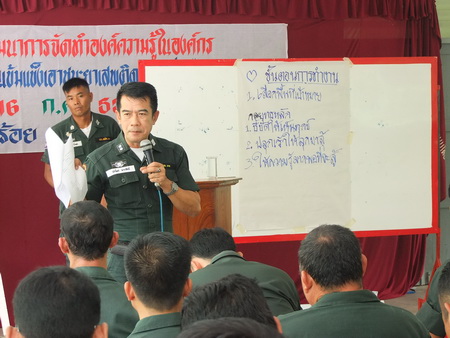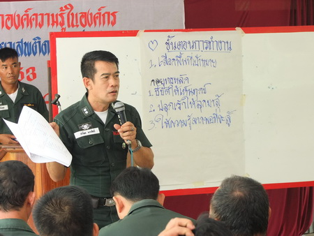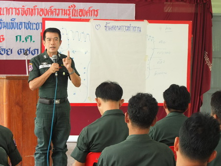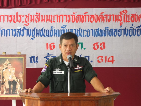ร.ต.ท.ปราโมช พาราศิลป์ ผบ.มว.มชส. ร้อย ตชด.314 ได้อธิบายถึงหลักการและขั้นตอนการทำงานเกี่ยวกับโครงการเสริมสร้างชุมชนเข้มแข็ง เอาชนะยาเสพติดอย่างยั่งยืนทั้งหมดให้แก่ข้าราชการตำรวจผู้เข้ารับการอบรมสัมนา |