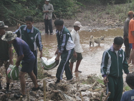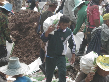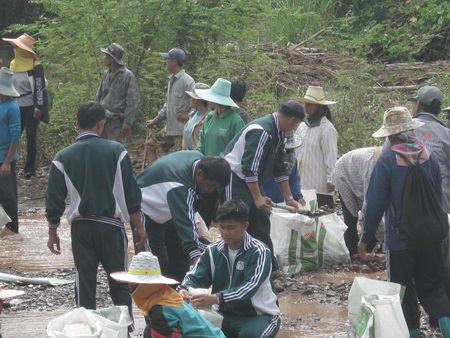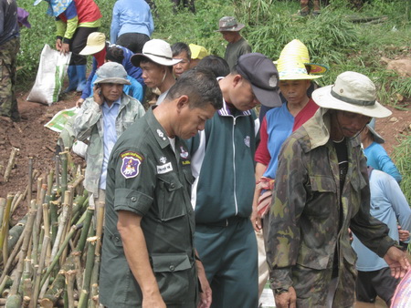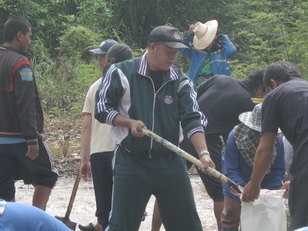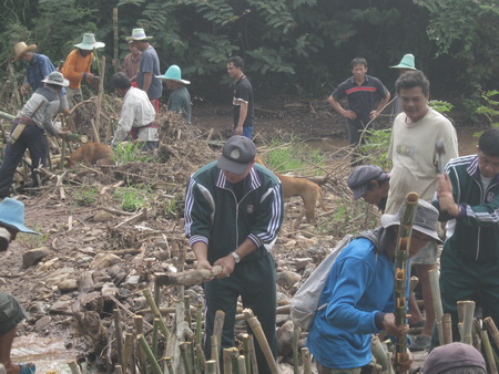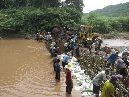 จัดกำลังพลสร้างฝายกั้นน้ำ (ฝายแม้ว) |