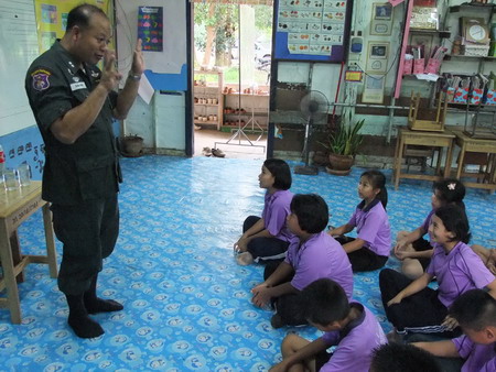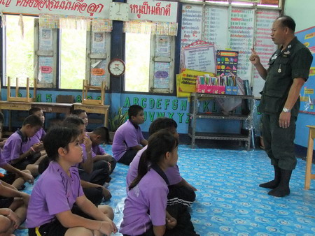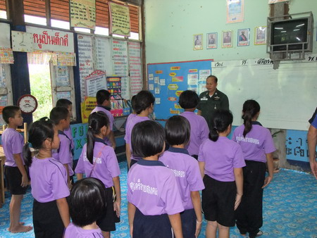 | เมื่อวันที่ 8 กันยายน 2553 ร.ต.ท.ประหยัด นามสุข ผบ.มว.(สบ 1)ฯ ร้อย ตชด.314 ได้บรรยายให้ความรู้เกี่ยวกับประวัติศาสตร์ของชาติไทย และ การเทอดทูนสถาบันพระมหากษัตริย์ ให้กับนักเรียนโรงเรียนวัดวังกอง ต.สองคอน อ.ฟากท่า จ.อุตรดิตถ์ มีนักเรียนชั้นประถมศึกษาปีที่ 1-6 เข้ารับฟัง การบรรยายจำนวน 35 คน |