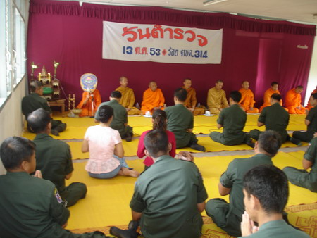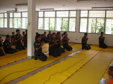 พิธีสงฆ์ ทำบุญตักบาตร เลี้ยงเพล เพื่ออุทิศส่วนกุศลให้ข้าราชการตำรวจที่เสียชีวิตไปแล้ว |