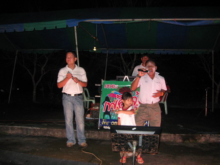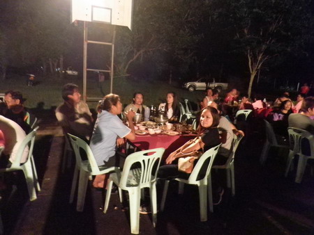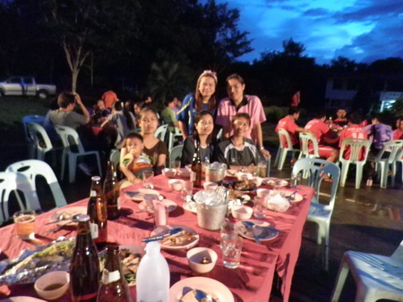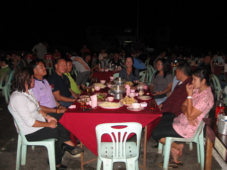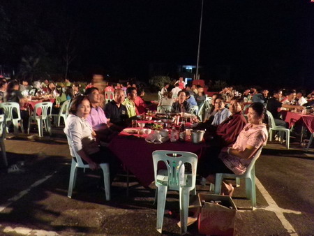 งานพบปะสังสรรค์ช่วงตอนเย็น ซึ่งมีครอบครัวของข้าราชการตำรวจ อบต.สองห้อง ,อบต.ฟากท่า ,อบต.สองคอน ,อบต.บ้านเสี้ยว,อบต.บ่อเบี้ยฯ และเทศบาลตำบลฟากท่า มาร่วมงานเป็นจำนวนมาก |